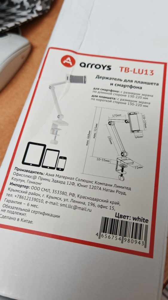 подставка для смартфона и планшета Arroys TB-LU13 white