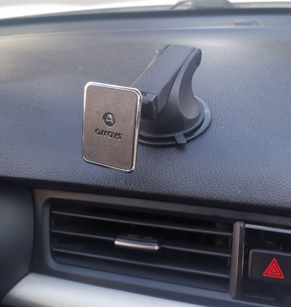 Вакуумная присоска предназначена для установки на лобовое стекло или приборную панель. Как правило, установка на лобовое стекло не вызывает затруднений и держатель держится на нем очень надежно. В случае с приборной панелью могут быть исключения, когда материал изготовления слишком мягкий или нет ровного места для установки. В этом случае можно приобрести дополнительную подставку Arroys Suction Pad. Она крепится на двухсторонний 3М скотч и уже на нее устанавливается держатель. Не забудьте обезжирить поверхность установки спиртовой салфеткой и не использовать подставку в течение 6 часов после монтажа.