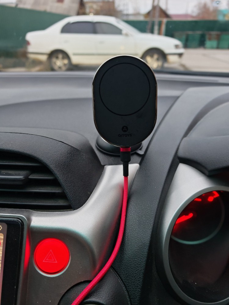 Новая модель от Arroys 2024 г - Dash - W4MS предназначен для использования с телефонами или чехлами с креплением Magsafe. Такое крепление используется в iPhone, начиная с серии 12 и в чехлах для iPhone. Встроенное в держатель магнитное кольцо обеспечивает крепление телефона на держателе без дополнительных приспособлений, а магнит в нижней части держателя фиксирует положение телефона по вертикали.