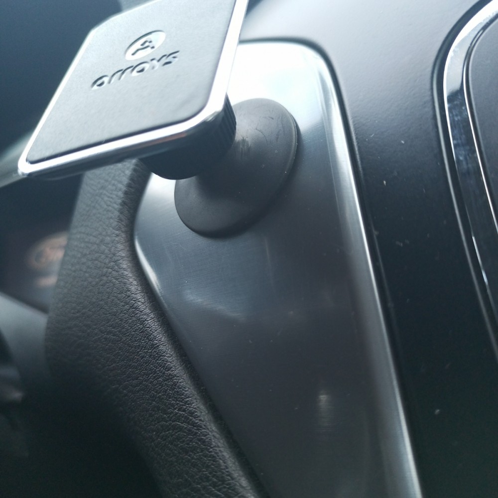 Магнитная "голова " Stick-SM1 содержит шесть неодимовых магнитов. Для крепления телефона на магнитной части используется металлическая пластина размером 45*65 мм. Она устанавливается на задней крышке телефона по центру с помощью скотча 3М. Если телефон с беспроводной зарядкой, то пластину надо сместить вниз, чтобы удалить ее от зарядной катушки. Телефон может использоваться и в тонком чехле или бампере, тогда пластина размещается между ним и чехлом. Прежде чем использовать установку пластины на скотч, необходимо проверить надежность крепления смартфона на магнитной части.