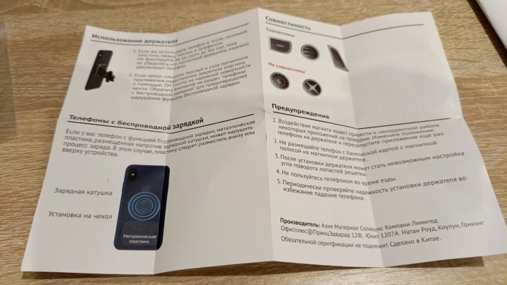 Магнитное крепление содержит внутри шесть неодимовых магнитов и способно легко и надежно удержать не только смартфон, но и небольшой планшет. Если у ваc телефон с беспроводной зарядкой, металлическую пластину надо наклеить внизу телефона, чтоб не мешать ее работе.Если такой функции в телефоне нет, то лучше разместить пластину по-середине.