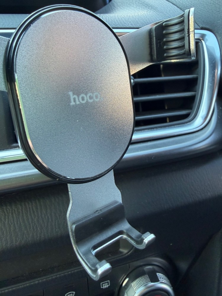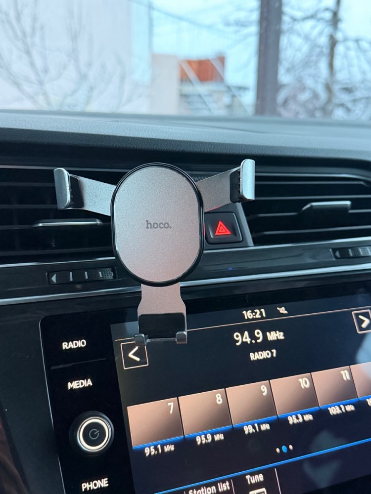 Hoco CA56 Plus Armor metal gravity - универсальный автомобильный держатель с автозахватом для смартфона. Устанавливается в вентиляционную решётку воздуховода. Подходит для iPhone 12 Pro, Samsung Galaxy S21 и других моделей