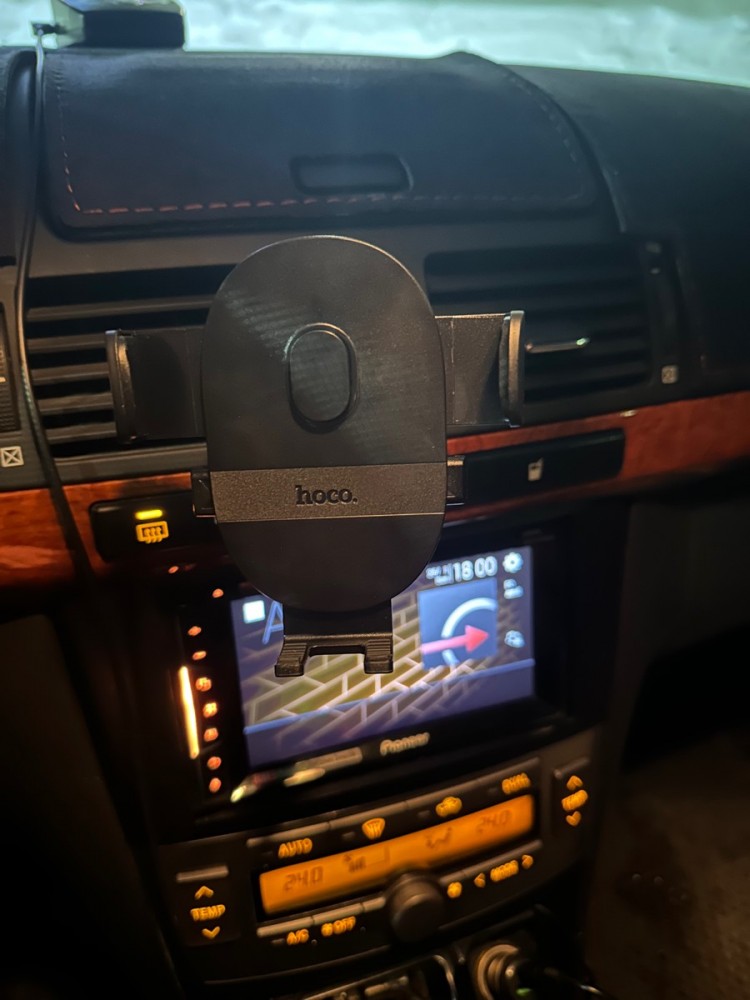 Автомобильный держатель для телефона Hoco H18 Mighty устанавливается в воздуховод с решёткой из прямоугольных пластин (круглые не подходят)