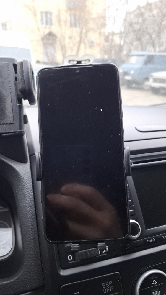 Захват происходит автоматически при касании тыльной стороной смартфона овальной клавиши на держателе. Нижняя полка полностью исключает выпадание смартфона, а вырез на ней открывает доступ к зарядному порту