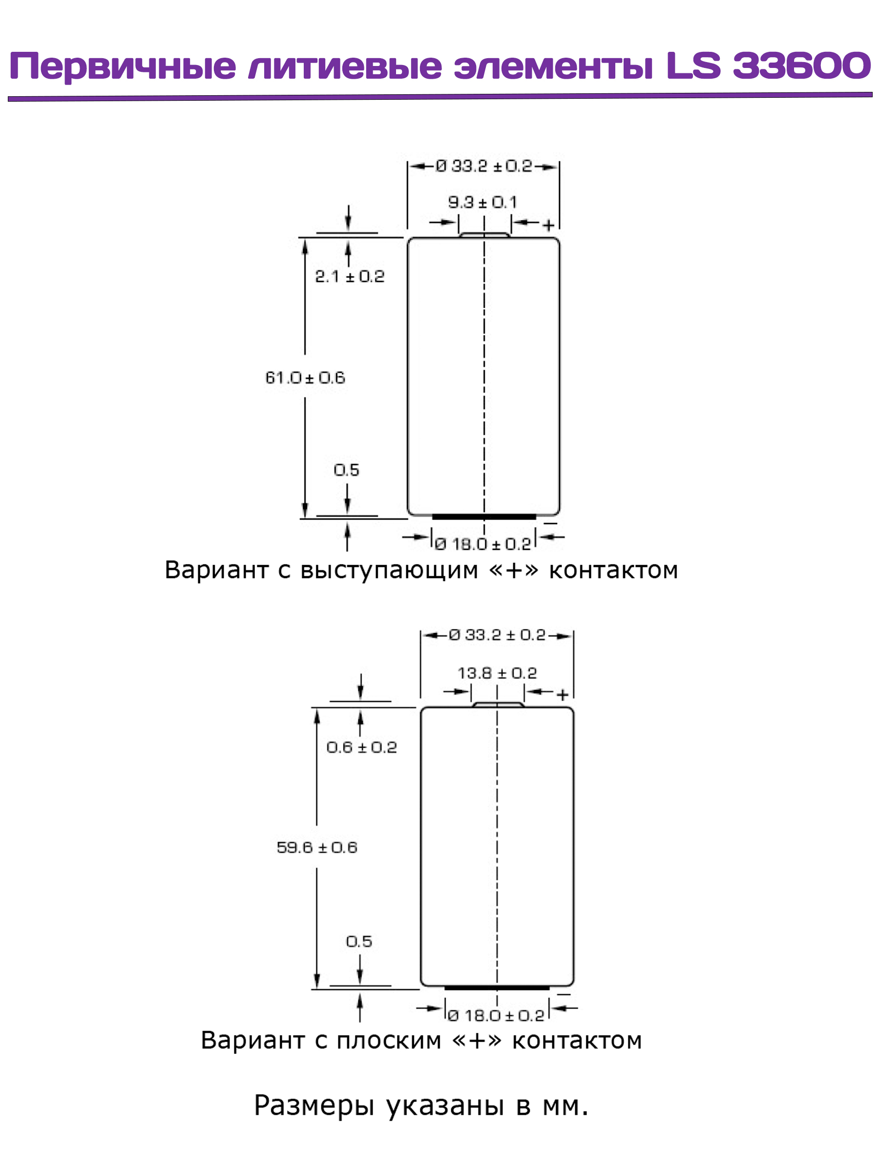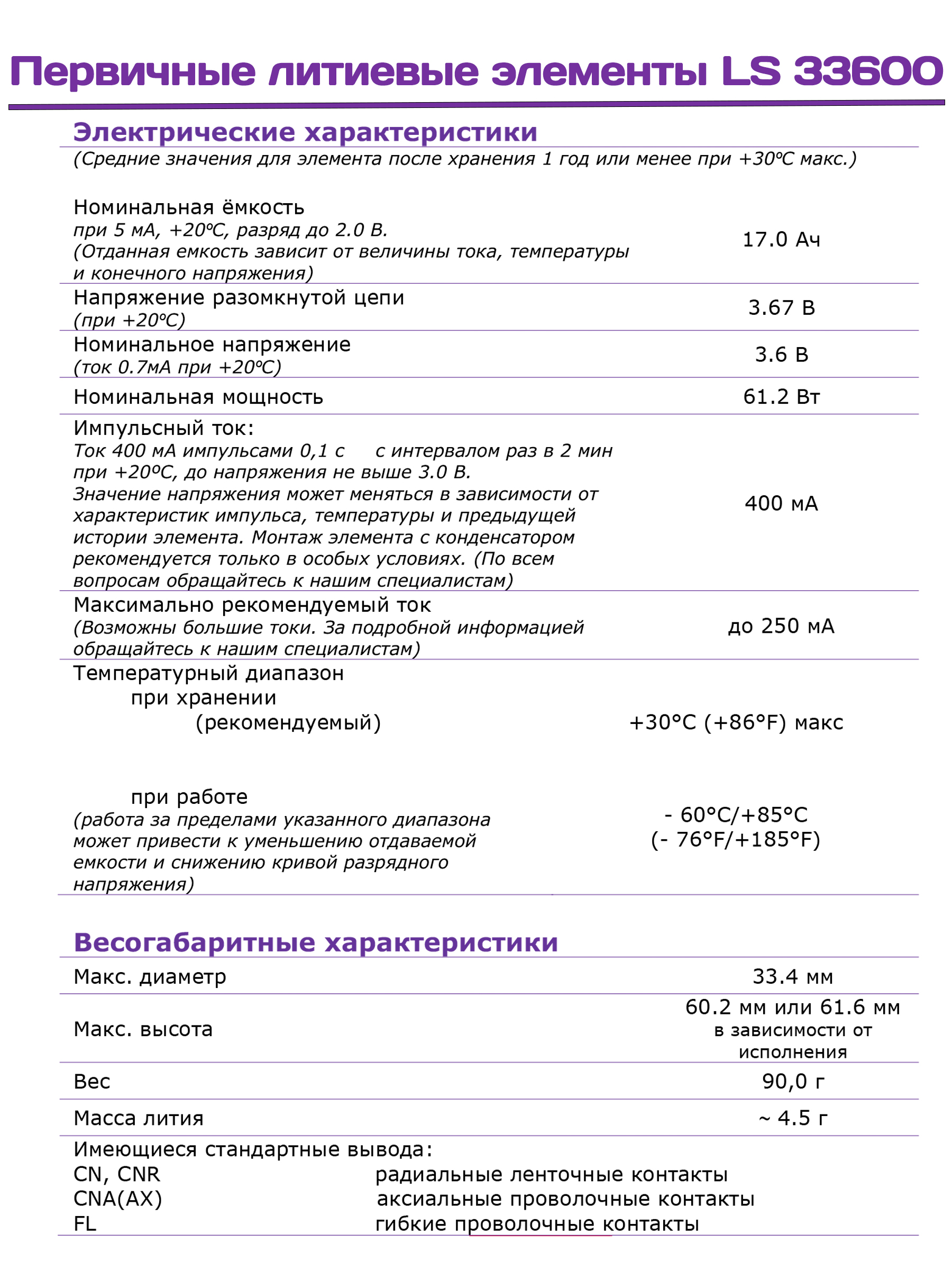 Технические характеристики литиевой батарейки 3.6 LS 33600
