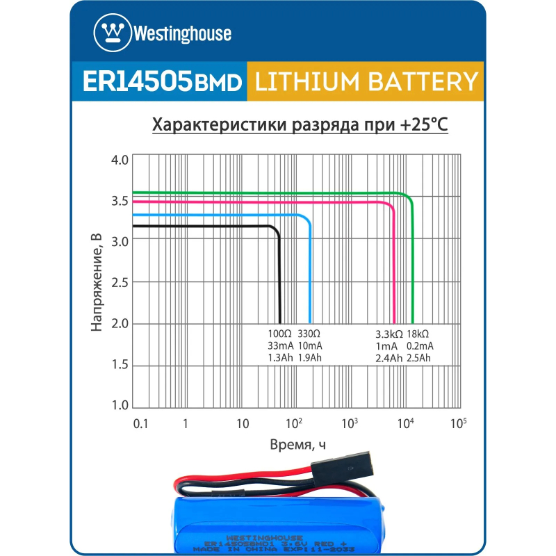 батарейки 3.6 В с коннектором Dupont 2,54 (BLS-2) Westinghouse ER 14505BMD1 (AA) connector 3шт.